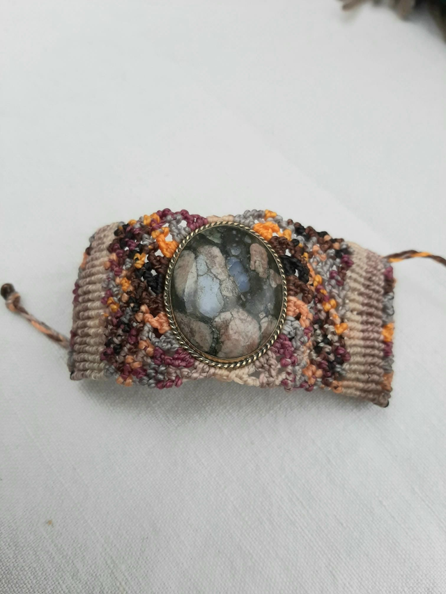 Jolie Bracelet manchette avec une Llanite, famille des Rhyolites.