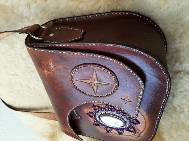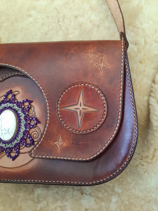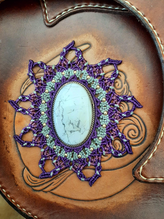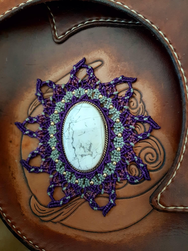 Sac cuir. Macramé et pierre naturelle. Howlite
