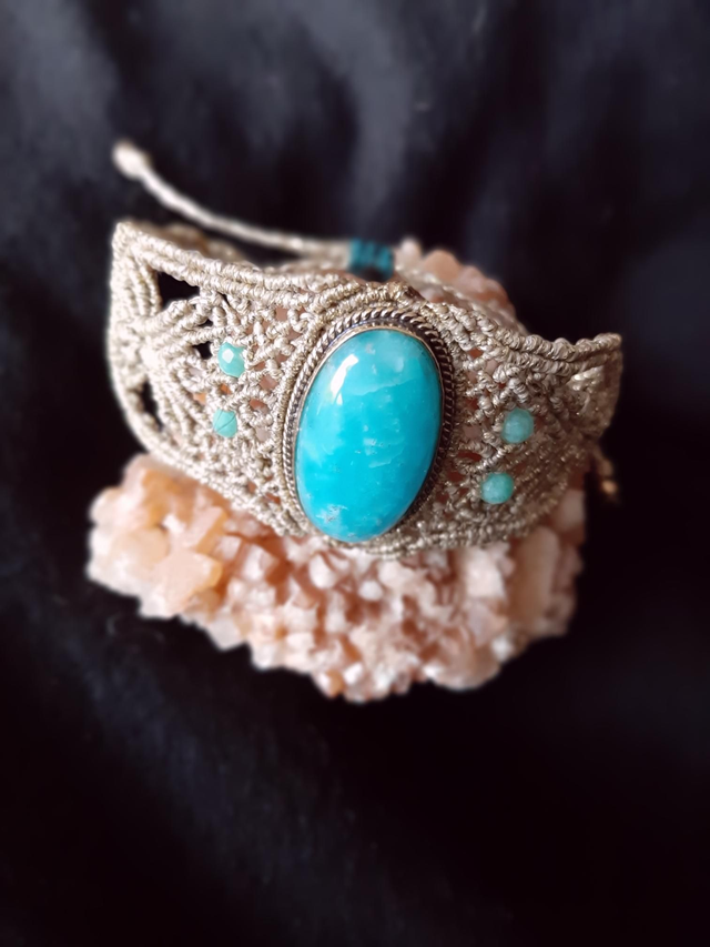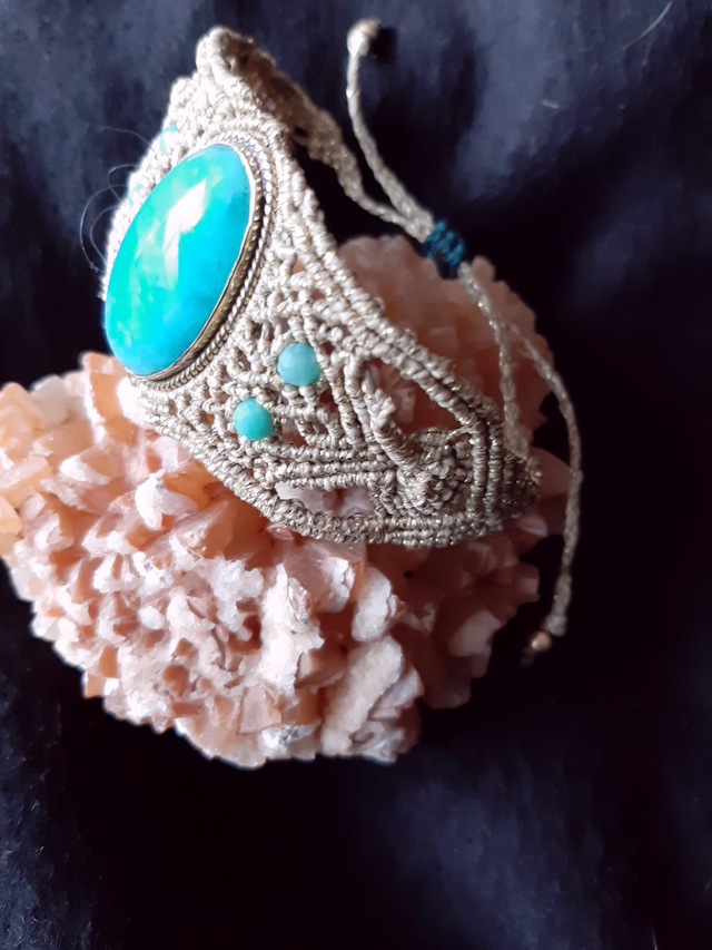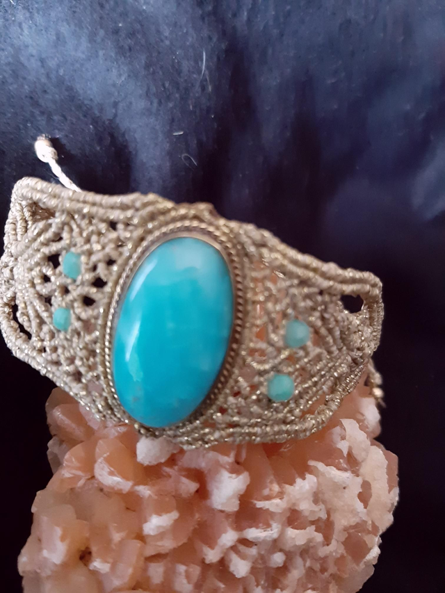 Fil doré et Amazonite pour ce bracelet manchette aux airs festifs